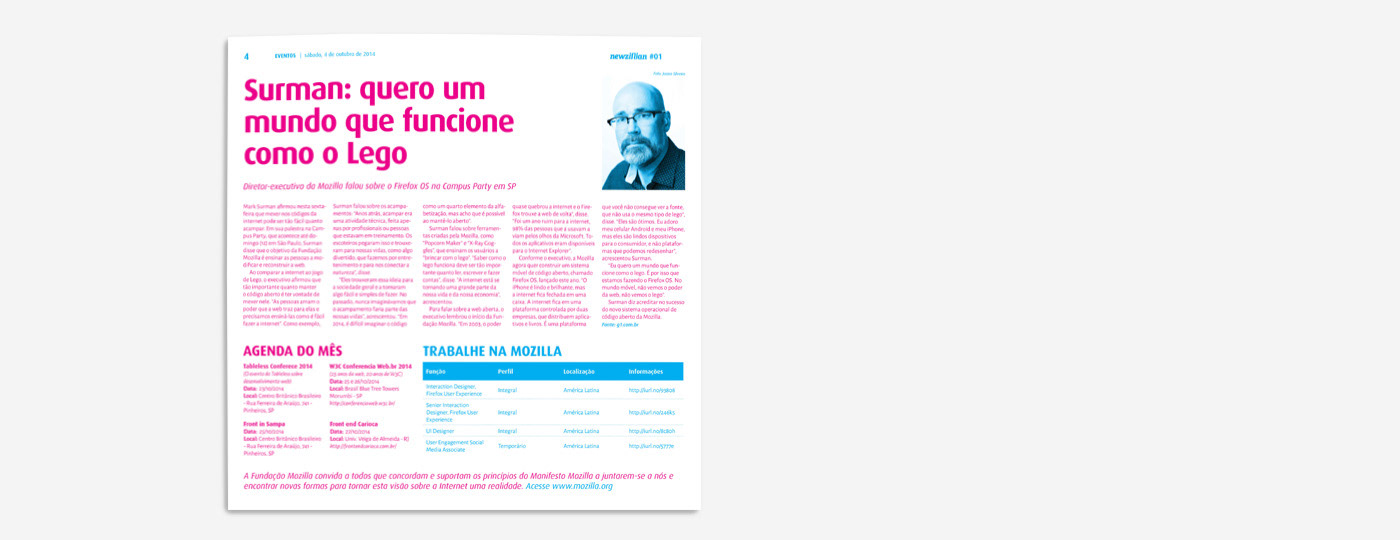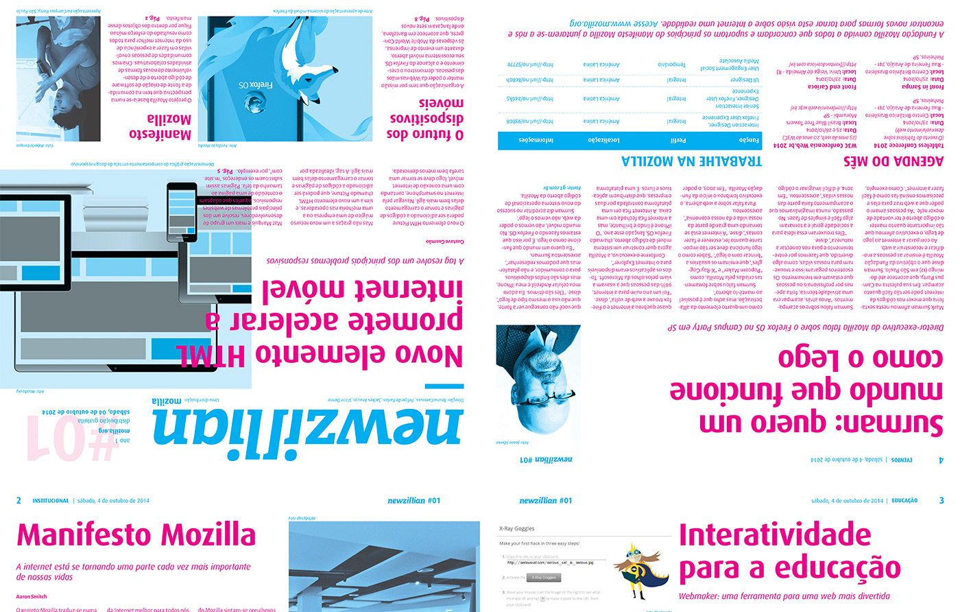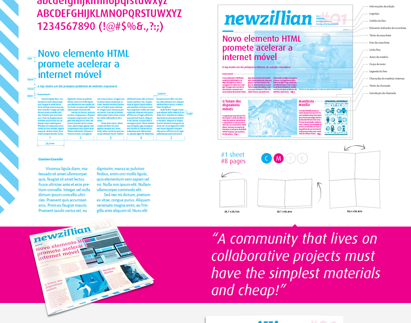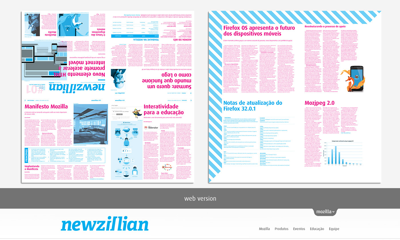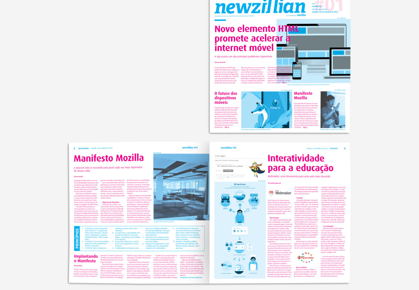 Newzillian é um jornal corporativo, conhecido por House Organ, desenvolvido conceitualmente para a Mozilla. O projeto previu a viabilidade financeiramente para uma comunidade colaborativa que normalmente inicia seus trabalhos com pouco recurso, através do uso de cores e folhas em quantidade limitada, porém projetadas para uma boa legibilidade e fácil manuseio do jornal.